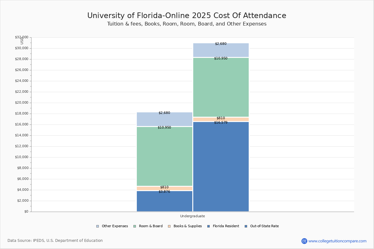 At university of florida, the estimated tuition and fees for candidates who have enrolled in undergraduate programs are $17,520 per year.